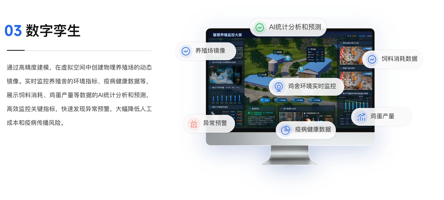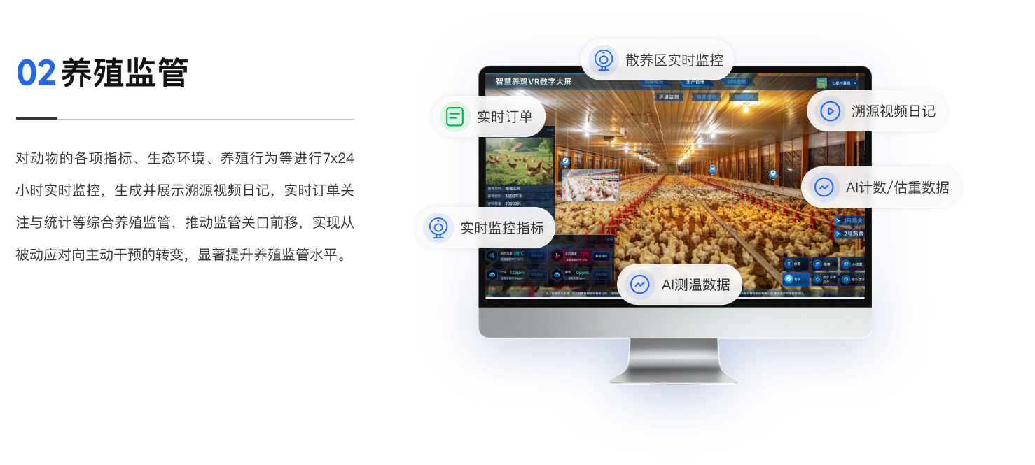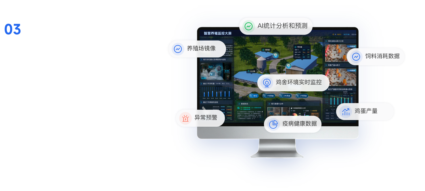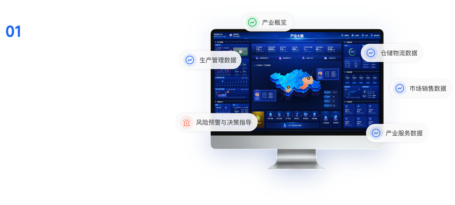 一屏统揽全域养殖态势,实现精准监管、风险预警与产业协同智慧,提升治理效能,汇聚全产业链数据,构建产业大脑,赋能政府精准监管、科学规划和高效服务产业链发展。