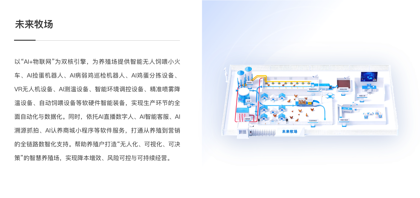 为响应国家乡村振兴战略,珠海创兴者智能科技有限公司依托自身在人工智能、大数据、云计算领域的技术优势, 于2022年发起并成立了“富慧养”智慧养殖产销一体化项目。该项目以“AI科技助农”为核心理念, 致力于通过前沿技术破解传统养殖业在生产管理、销售推广等方面的现实难题, 构建行业产销一体化,助力养殖产业高效增收。